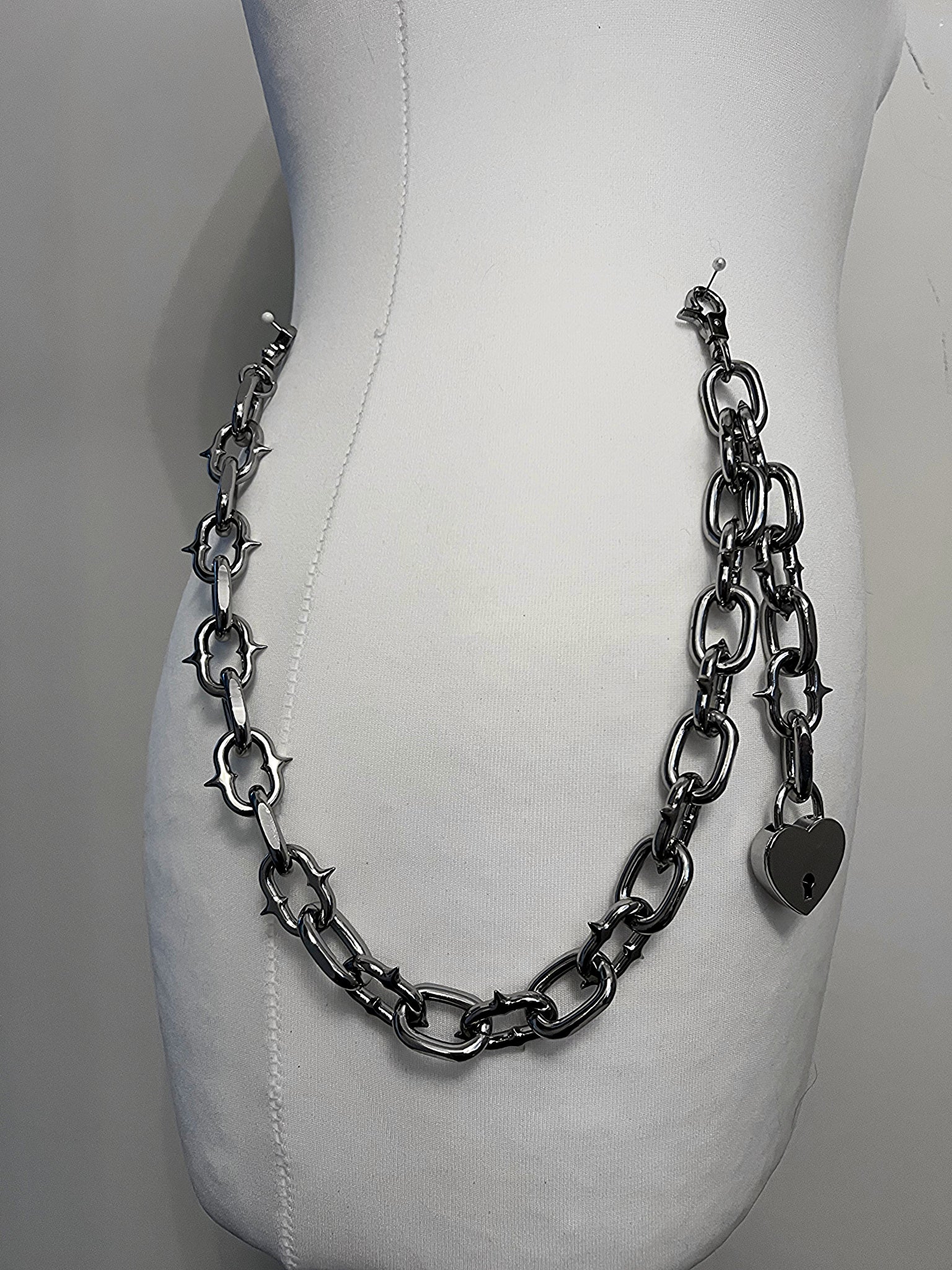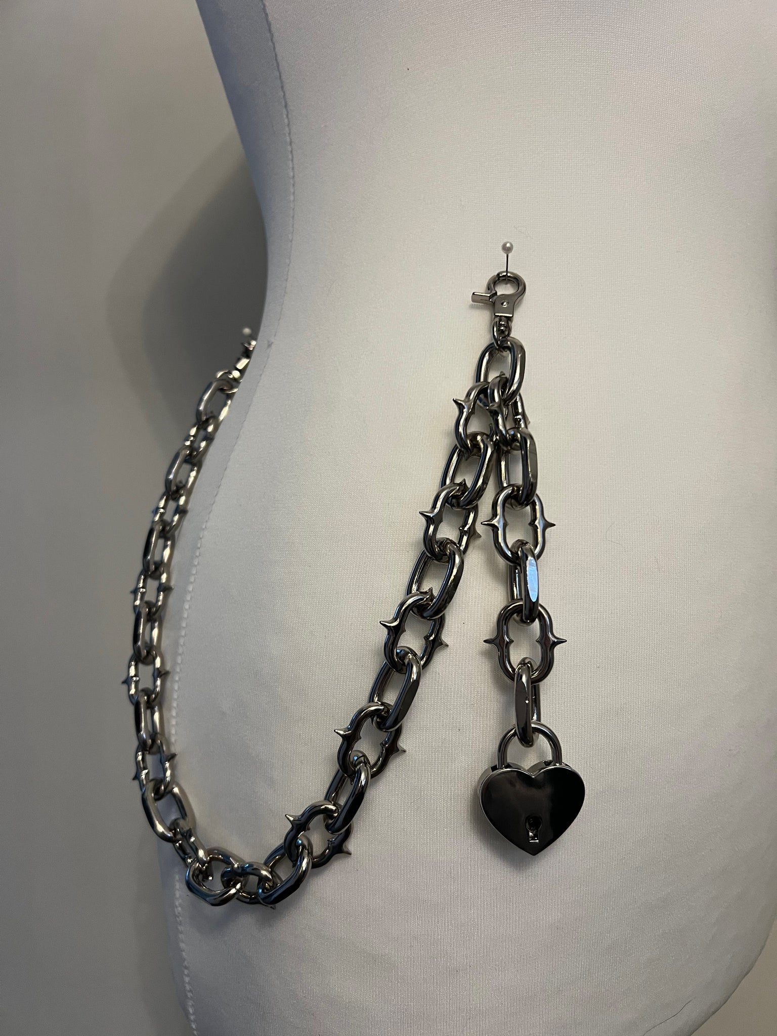 Spiked chain jeans / wallet chain with heart padlock